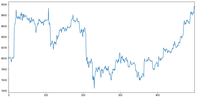 df['ClosePrice'].plot(figsize=(14, 7))
