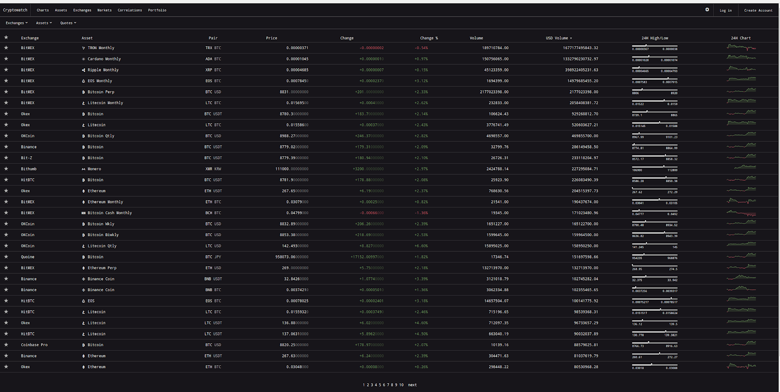 在数字货币领域的交易,这一点更加显著。数字货币的交易在全球许多交易所进行,和股票不同,一支股票可能只在少数几个交易所交易,而一种数字货币可以在所有的交易所同时进行交易。同时,因为没有股市的开盘、收盘限制,数字货币的交易通常是 7 x 24 小时不眠不休,比前世的 “996 福报”凶残多了。要是真有交易员能在这个市场活下来,我们尊称一声“神仙”也不为过了。