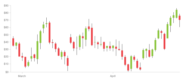了解过一些股票交易的同学,可能知道K线这种东西。K线又称“蜡烛线”,是一种反映价格走势的图线。它的特色在于,一个线段内记录了多项讯息,相当易读易懂且实用有效,因此被广泛用于股票、期货、贵金属、数字货币等行情的技术分析。下面便是一个K线示意图。